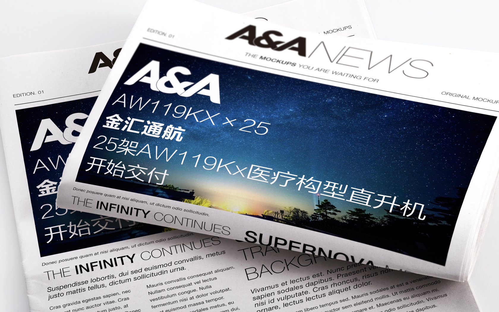 伴随着在航空救援领域事业的不断壮大,金汇通航需要一套全新的品牌视觉体系,来彰显在行业内的标杆地位,传递更具现代感的品牌视觉形象。 2017年,我们帮助金汇通航实现了从英文名称到标志等整个品牌形象的焕然一新。 品牌新英文名称为A&A, 是Aviation & Air ambulance的首字母缩写,鲜明诠释了金汇通航的两大业务板块:通航和空中救援。 品牌主视觉形象是由新英文名称A&A构成的一款纯字体标志。整体字形清晰果断,暗示金汇通航的行业属性;字形笔画以圆角收头,灵感来自直升机螺旋桨的的末端造型。 色彩选择深蓝与红橙色,深蓝色代表信赖、效率以及对通航事业的不断追求,红橙色代表活力、警示以及对生命的持续关注。 标志整体造型简练、易识别,传递出现代、活力、专业、信赖的品牌信息。