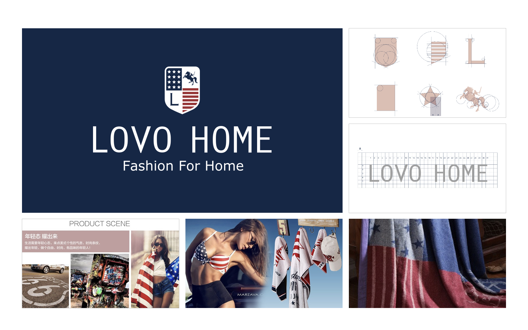 一匹前蹄腾空的骏马和挺身挥剑的骑士,表达勇于开拓的品牌创新精神;嵌入的品牌首字母 “L”,使得标志更具有LOVO的品牌特性与代表性。整款标志将开拓创新、追求自由、梦想的美国精神与家纺的柔和气质完美结合,相得益彰。星星、条纹、骏马这些标志中的元素,后续也被应用到LOVO的家纺产品设计中,获得了消费者的喜爱。LOVO真正从品牌到产品,做到了fashion for home。