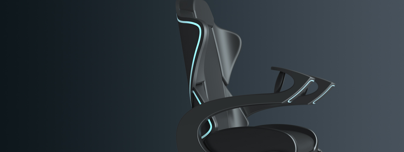 这款场馆用动感座椅,采用了酷炫的流线型外型设计,并辅以周身的LED光带配合场馆需求,可打造不同的光线效果。