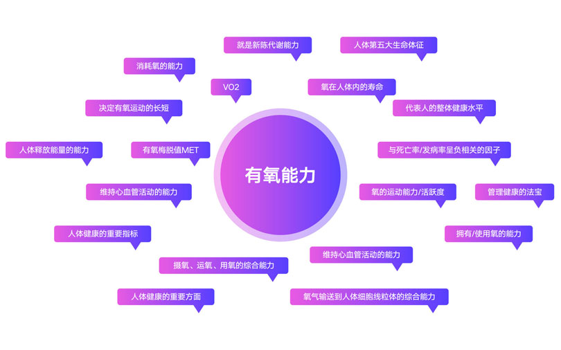 氧是人体进行新陈代谢的关键物质,是人体生命活动的第一需要。氧从外界被人体所摄取,以血红蛋白为载体,经血液循环运输到活动的肌肉,最终被肌肉所利用。在单位时间内,人体这种摄氧、运氧、用氧的综合能力被称为有氧能力。