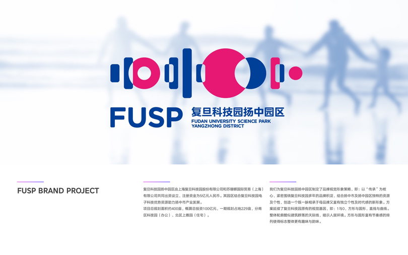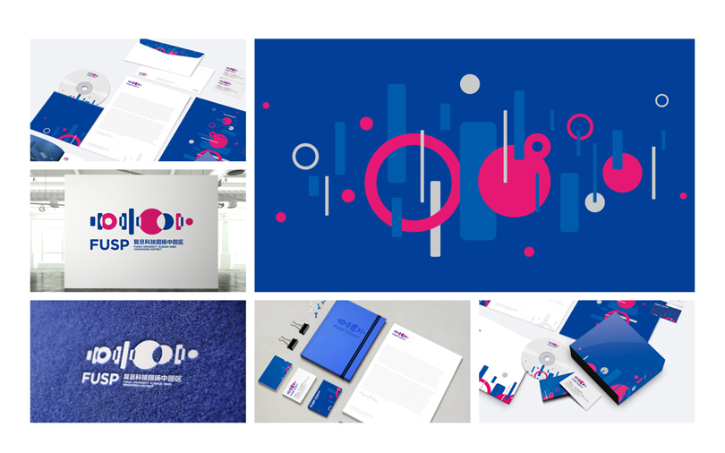 inkey 巧妙提取出品牌母体复旦科技园的品牌图形基因:1和0、方形与圆形、直线与曲线,用富有节奏感的排列方式,酷似建筑群落天际线的数码化图形构成,赋予了复旦科技园扬中园区追求的时尚、现代、活力、表达个性自我的品牌新格调。