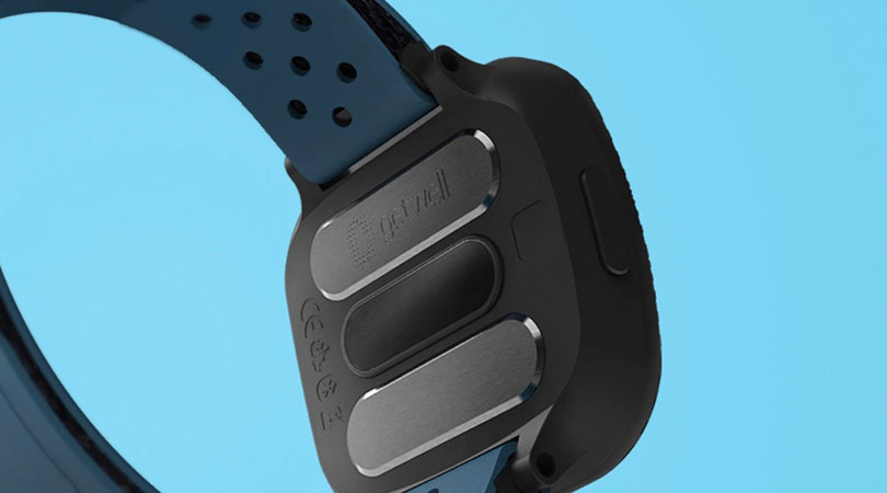 测量精准一般可通过肌肤贴合度、佩戴紧密度、设备稳定度等方式来实现。getwell 的第一代产品通过底部金属条上突出的纹路来增加肌肤贴合度,采用专业运动员使用的肌贴来把设备紧紧粘在用户身上,且粘贴动作无法独立完成。