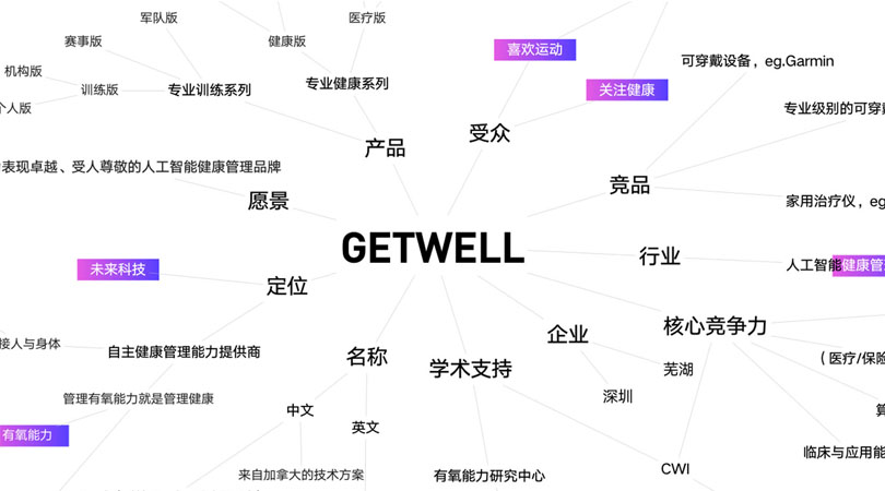 在 inkey 为 getwell 提炼的品牌树中,未来科技感、表现卓越、运动健康等,都是 getwell 的品牌关键词。用户画像方面,除了专业机构和运动员之外,还有运动爱好者、慢病患者、孕产妇等普通消费者。品牌的中高端市场定位,也决定了产品面貌需要令用户觉得物有所值。